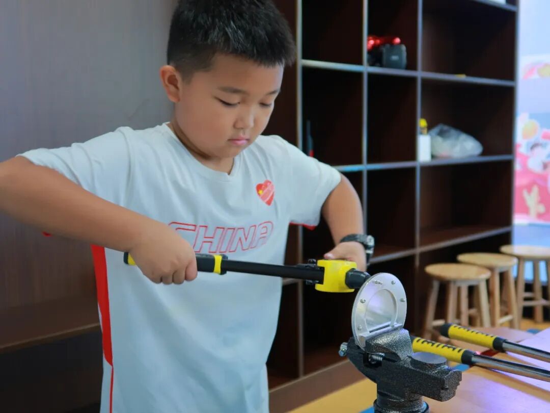 飞机的发明及其发展,给世界带来了巨大的变化,是人类20世纪最伟大的成就之一。虽然我们不能去到飞机制造工厂一探究竟,但是在体验中心有这样一个充满趣味且涨知识的手作课程,在课堂中,小朋友可以了解到飞机机翼的连接方式和过程,感受航空工艺的魅力,学习航空工匠精神,并使用铆钉枪和虎钳,制作一个属于自己的铝制铆钉杯垫。
