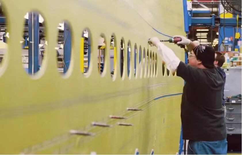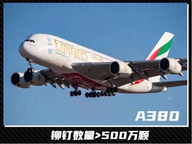 现代飞机蒙皮主要是用铆接。我国的C919使用了超过100万颗铆钉,空客A380则超过500万颗,光是铆钉就重达2.5吨