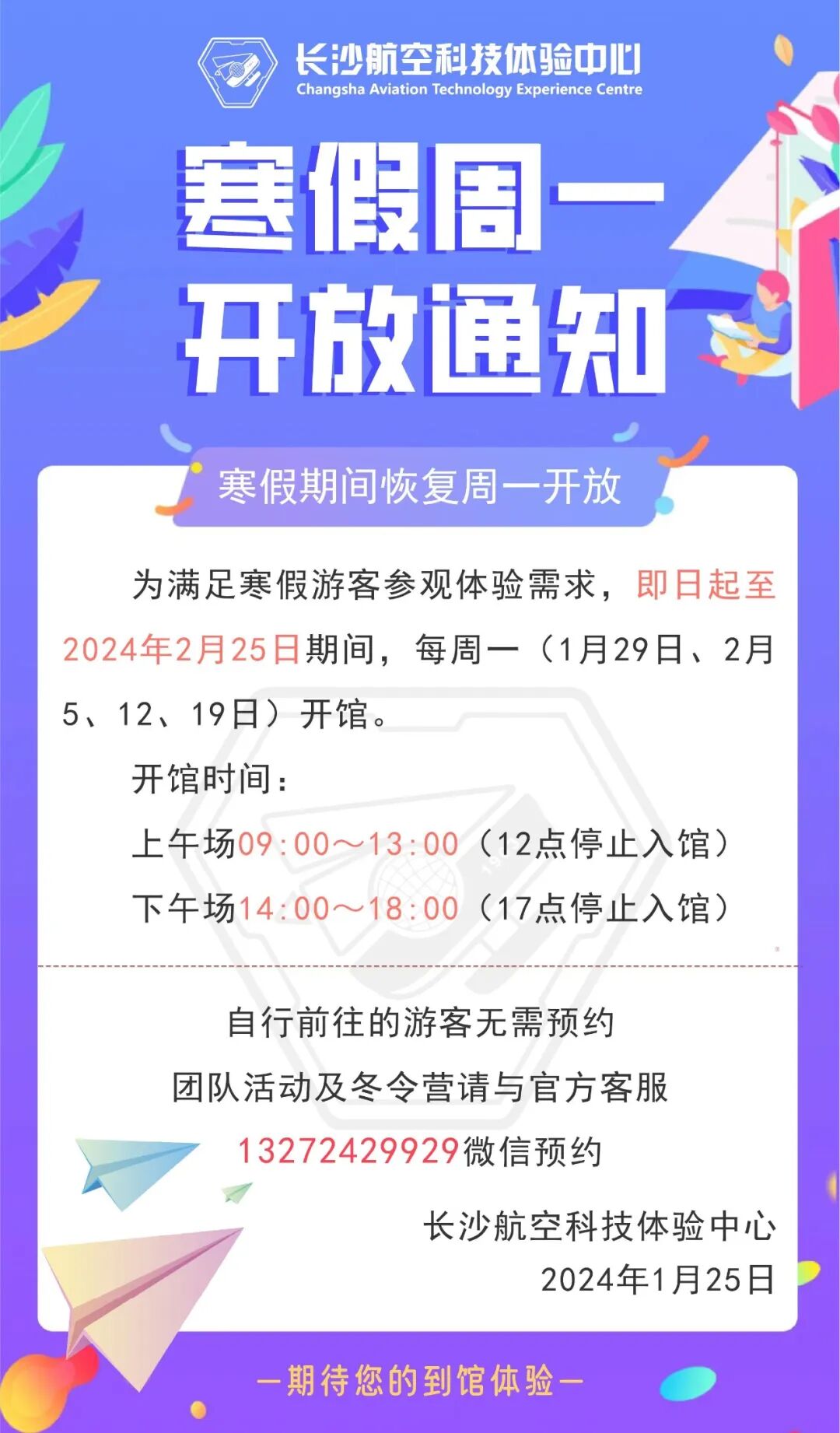 截止2022年先后取得并挂牌中国航空学会颁发的“科普教育基地”;中国航空运输协会颁发的“红色教育基地”;中国航空工业集团“航空科普教育基地”;湖南省科技厅、湖南省科学技术协会颁发的“湖南省省级科学技术普及基地”;湖南省航空学会颁发的“湖南省航空航天研学基地”;长沙航空职业技术学院颁发的“就业创业实习基地”;长沙市科学技术协会“长沙市首批科普教育基地”等荣誉认证称号;旨在通过互动体验引导公众在探索、发现的过程中,感悟科学魅力、开启智慧之门,让知识、行动、梦想,不期而遇。
