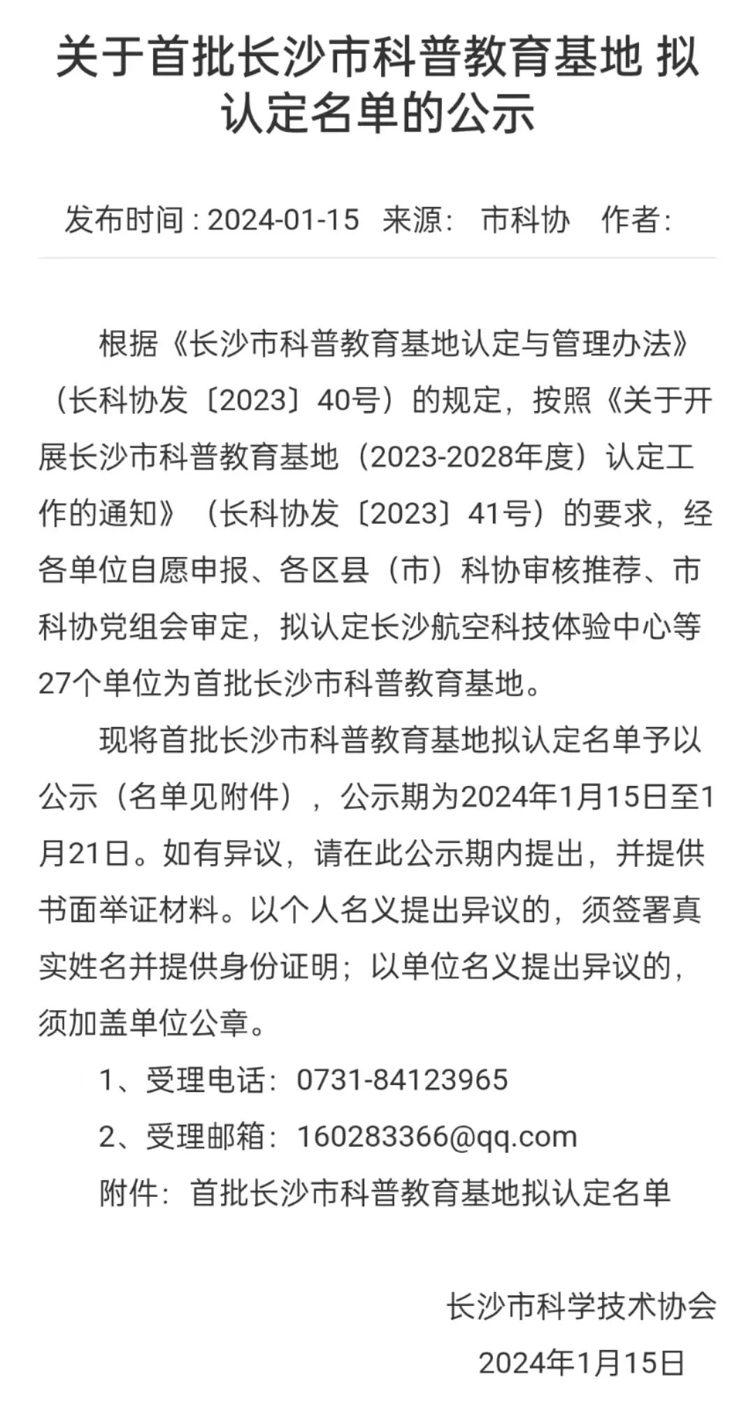 “首批长沙市科普教育基地认定”